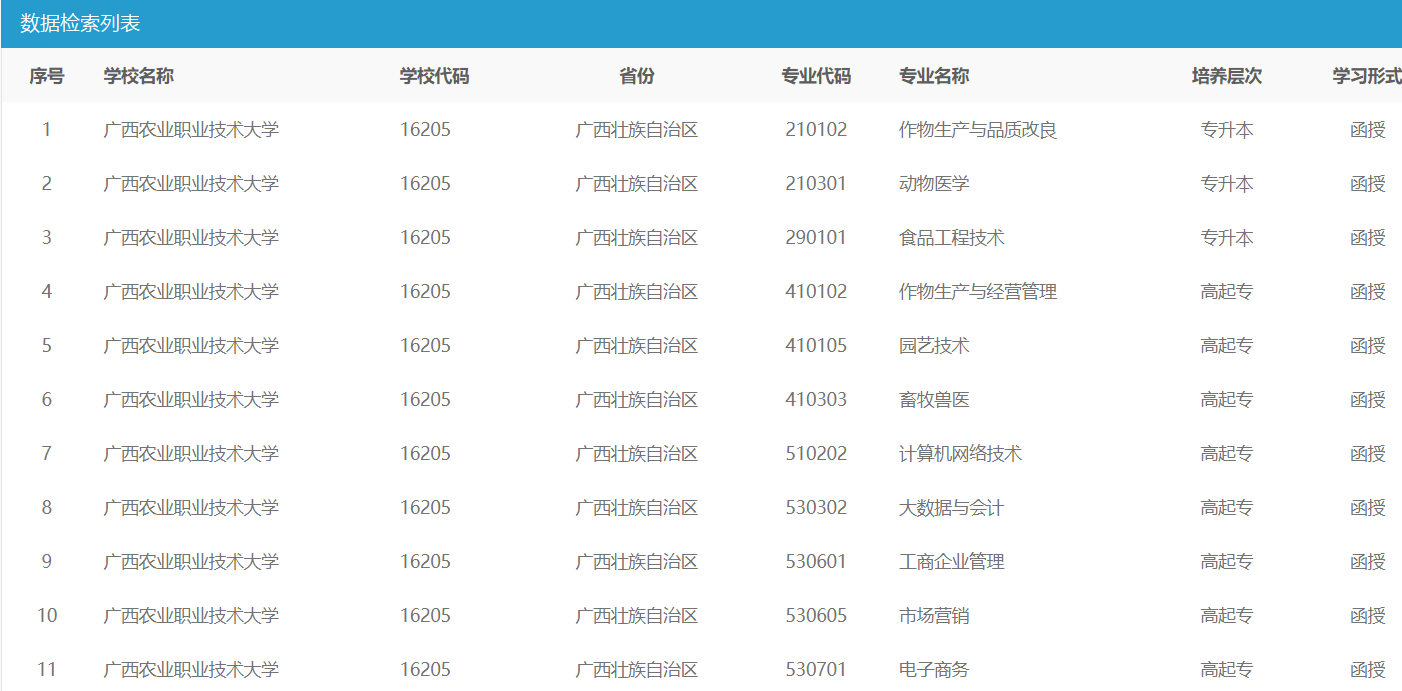 广西农业职业技术大学成人高考招生专业涵盖多个领域,如教育学、农学、理工类等,为考生提供了广泛的选择空间。该校成人高考的报名流程简单明了,欢迎有志于继续深造的考生积极报考。